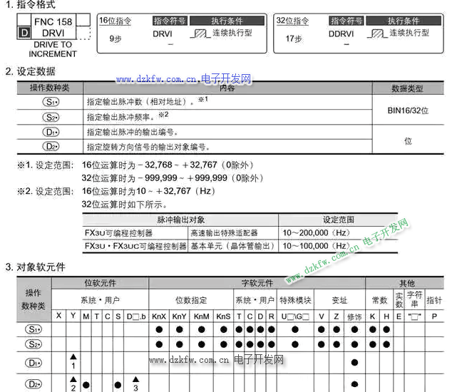 这里主要强调下旋转方向的变换,对于DRVI,当脉冲输出值(相对地址)为正数时正转,脉冲寄存器的脉冲当前值增加,当脉冲输出值为负时反转,脉冲寄存器的脉冲当前值减少,比如设置脉冲输出数为10000,则电机正转,脉冲输出数为-5000时反转。