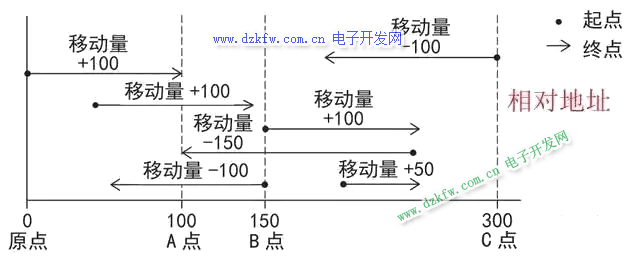 以相对驱动方式执行单速定位的指令,用带正/负的符号指定从当前位置开始的移动距离的方式,也称为增量(相对)驱动方式