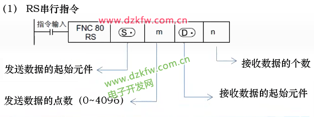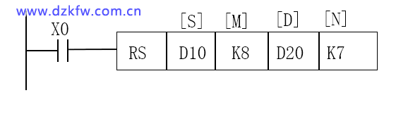 X0: RS指令触发条件,当X0位ON时RS指令进入发送或接收数据的等待状态。