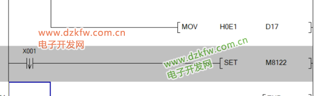 当RS指令处于发送或接收数据的等待状态时置位M8122,此时RS指令中发送数据寄存器里的数据将会被发送给外部设备。数据发送完成后系统会自动复位M8122,不能使用程序对其进行复位操作。