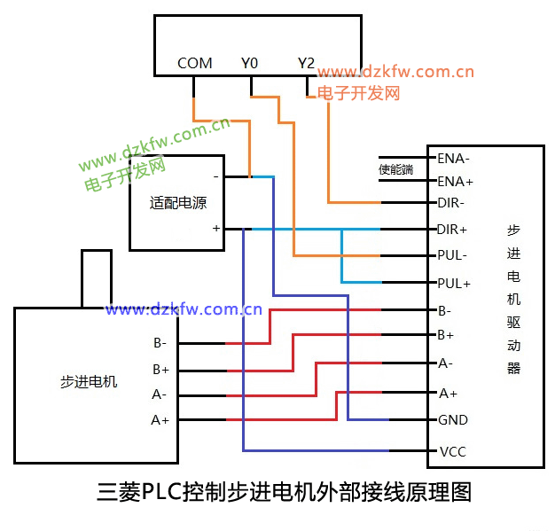 上面说了一个三菱PLC控制步进电机,其中对PLC选型、I/O口分配、程序等进行了简单的说明,现在补充一下外部接线,下面提供外部接线的示意图。
