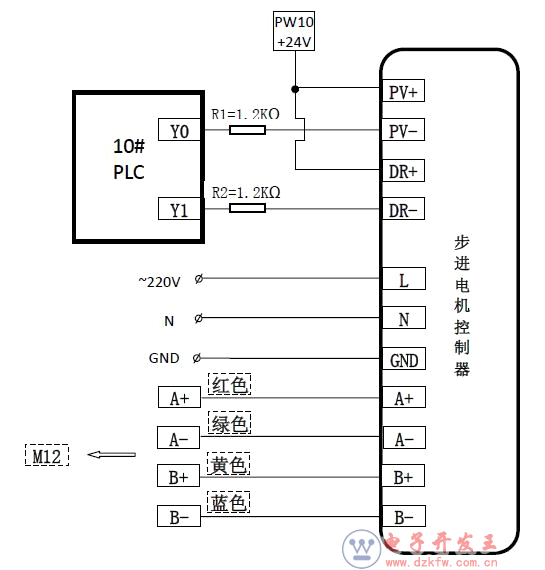 注意:有些步进电机驱动器的电源电压为12v,这时就需要增加电阻进行限流,比如串联1.2kΩ。如下图: