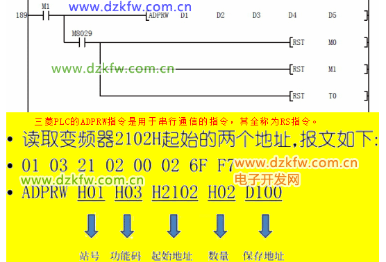 ADPRW 指令段,ADPRW指令详解[三菱PLC作Modbus通信,用ADPRW指令读取变频器的频率,了解一下]