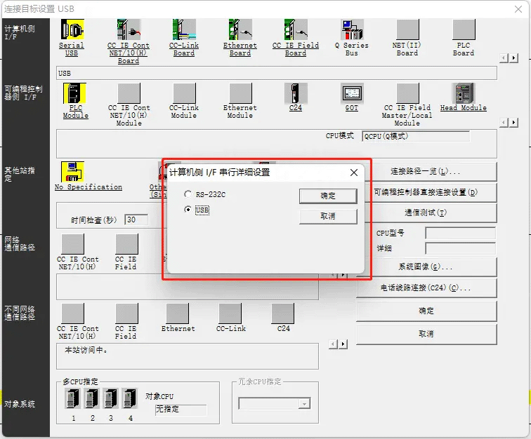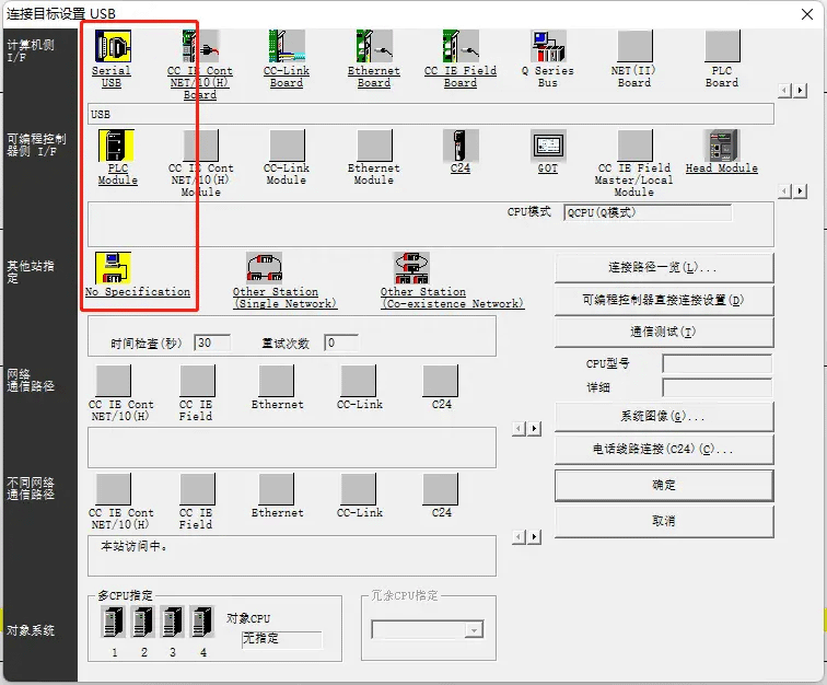 三菱Q系列PLC,一般有USB连接,自带以太网端口连接,以太网模块连接三种模式,今天就讲一下三种模式的连接流程。