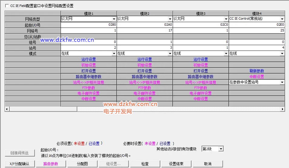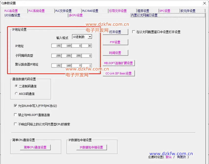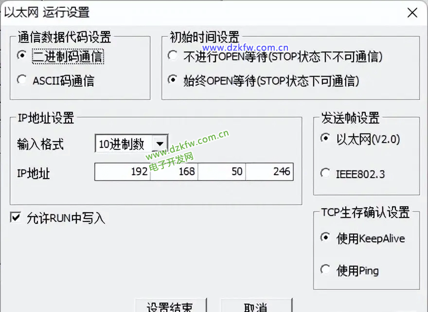 点运行设置,设置以太网模块的IP,设置完成点击设置结束;