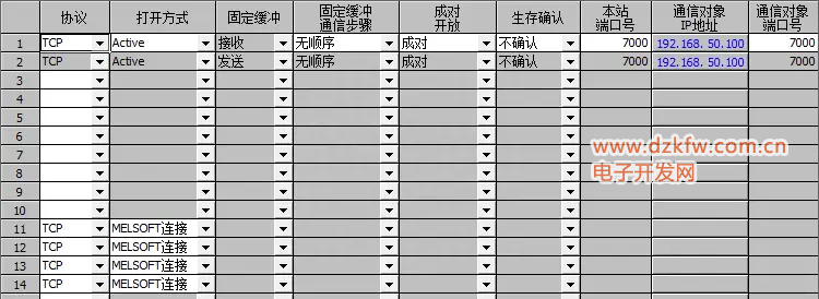点击打开设置,这里可以添加各种通讯通道,如果想要电脑通过GX Works2进行通讯,要添加MELSOFT连接,一个通道只允许一台电脑连接,如果要允许多人同时调试连接,那么就多设置几个通道;