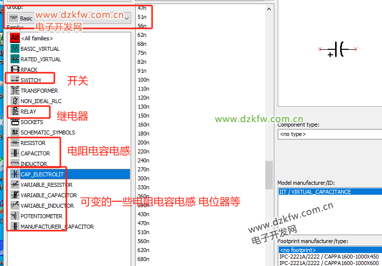 这些元器件图标点开,界面都是一样的,就是选型界面。