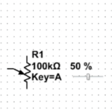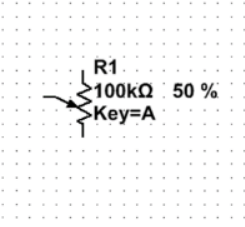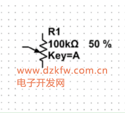 如果电位器的图标中出现“Key=A”,意味着按动“A”键就可以按照固定的增量增加滑动端与下固定端之间的电阻阻值占总阻值的百分比;而按动“A”键+Shift键就可以减小这个百分比。