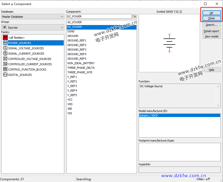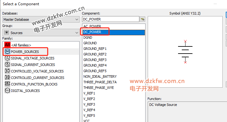 选择“POWER_SOURCES”,点击“DC_POWER”,最后点击“OK”
