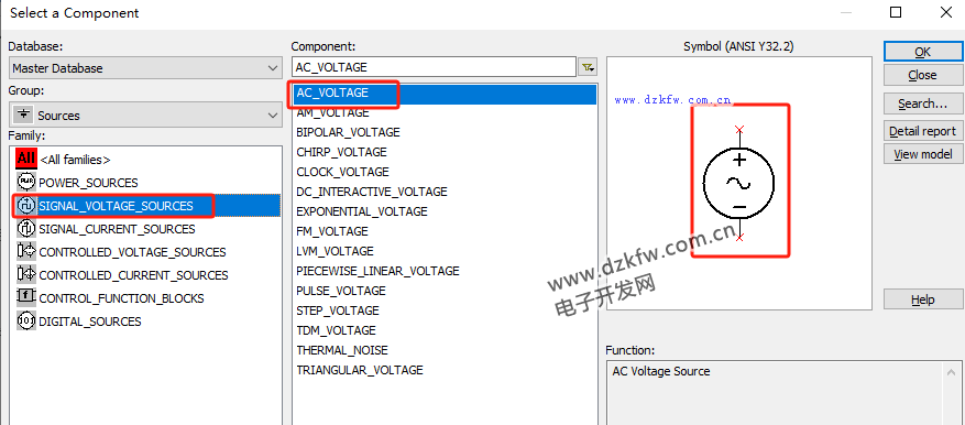 选择“SIGNAL_VOLTAGE_SOURCES”,点击“AC_VOLTAGE”,最后点击“OK”。