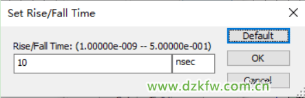 在该窗口中设置上升和下降时间之后点击“OK”按钮完成设置。点击“Default”按钮则恢复默认设置。点击“Cancel”按钮将取消设置。