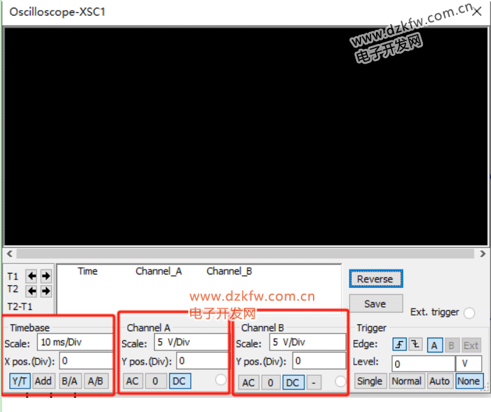 Y/T按钮:X轴显示时间刻度,Y轴显示电压信号的幅度