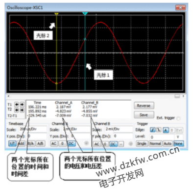 要显示波形读数的精确值时,可用鼠标将垂直光标拖到需要读取数据的位置