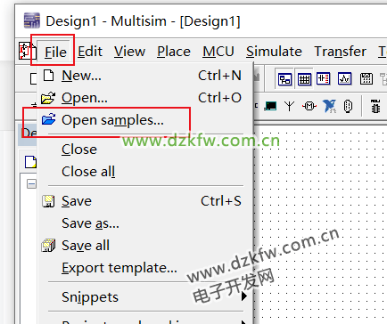 Multisim自带了一些电路模版,可以在File菜单中Open samples