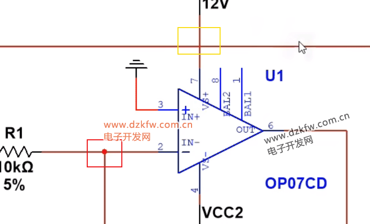 运放图标下面的ABCD表示该运放内部是由4个运放构成。