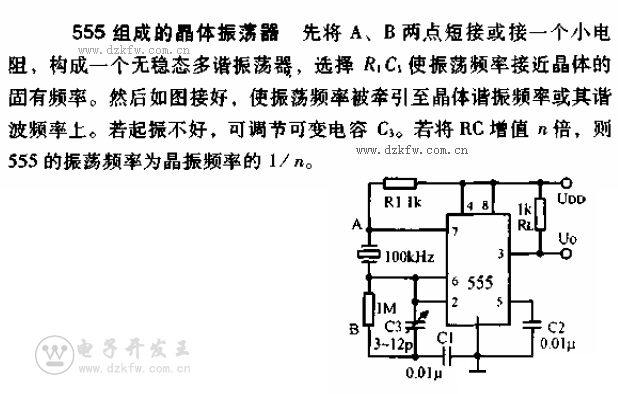 555组成的晶体振荡器电路图