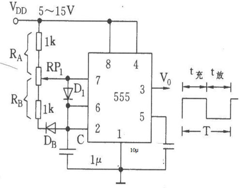 555定时器产生方波原理(一):占空比可调的方波发生器