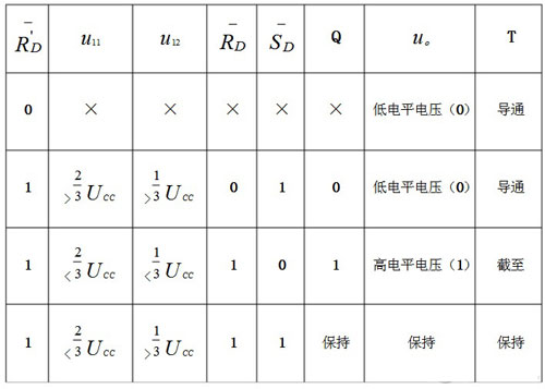 双稳态工作模式下的555芯片类似基本RS触发器。在这一模式下,触发引脚(引脚2)和复位引脚(引脚4)通过上拉电阻接至高电平,阈值引脚(引脚6)被直接接地,控制引脚(引脚5)通过小电容(0.01到0.1μF)接地,放电引脚(引脚7)浮空。所以当引脚2输入高电压时输出置位,当引脚4接地时输出复位。