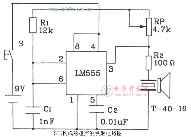 555构成的超声波发射电路图