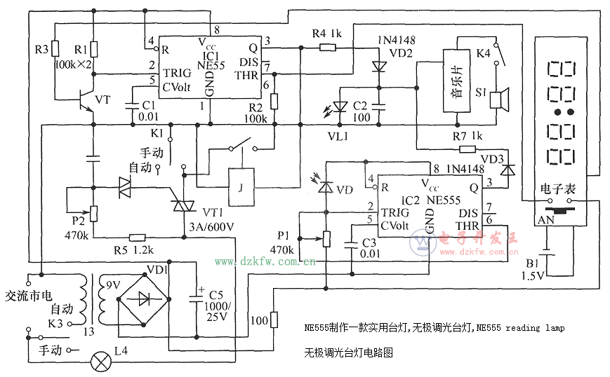 NE555制作一款实用台灯,无极调光台灯,NE555 reading lamp