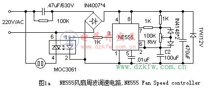 NE555风扇周波调速电路,NE555 Fan Speed controller