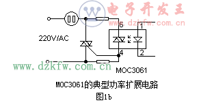 图1b电路为MOC3061的典型功率扩展电路,在控制功率较大的电机时,应考虑使用功率扩展电路。制作时,可参考图示参数选择器件。由于电源采用电容压降方式,请自制时注意安全,人体不能直接触摸电路板。