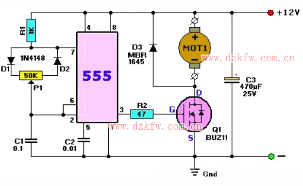 使用NE555的12V直流电机调速电路