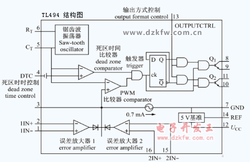 16脚为控制比较放大器的同相输入端。TL494在电路中的应用