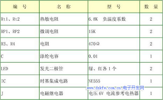 (用温度计监测),过一分钟后(Rt1与环境达到热平衡),调RP1起到LED1刚好发光为止,反复多调几次,可先将②脚与地短接一下,使③脚输出高电平