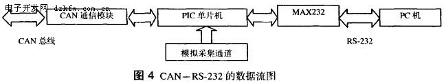 PIC16F877A单片机是目前使用非常广泛的中端单片机,在本系统中,它主要是用于控制CAN控制器SJA1000T,对SJA1000T进行初始化和读/写操作以及将从CAN总线或从RS-232总线传来的数据进行打包处 后再转传到RS-232总线或CAN总线上,即对两个总线上的数据流按照协议进行处理和传送。下位机的单片机主要是采集模拟信号并实现A/D转换,并通过CAN总线上传给上位机。