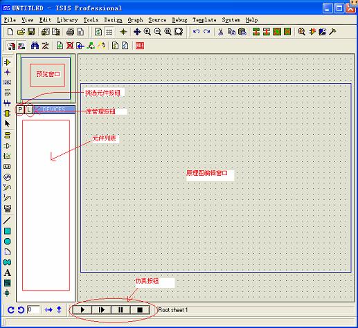 1.原理图编辑窗口(The Editing Window):顾名思义,它是用来绘制原理图的。注意,这个窗口是没有滚动条的,你可用预览窗口来改变原理图的可视范围。同时,它的操作是不同于常用的 WINDOWS应用程序的,正确的操作是:中键放缩原理图;左键放置元件;右键选择元件;双击右键删除元件;先右键后左键编辑元件属性;先右键后左键拖动元件;连线用左键,删除用右键。