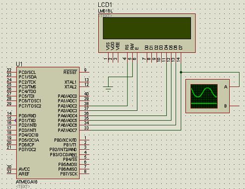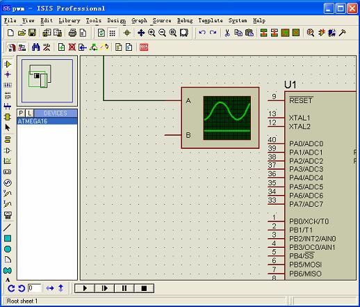 本例要用到的元件有:ATMEGA16、LM016L(LCD1602)、“地“、示波器。