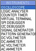 用于挑选元件(components)、 终端接口(terminals)、 信号发生器(generators)、 仿真图表(graph)等。举例,当你选择“元件
