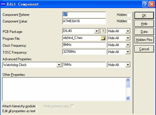 单击OK,关闭对话框,这时元件列表中列出 ATMEGA16,同样找出LM016L。