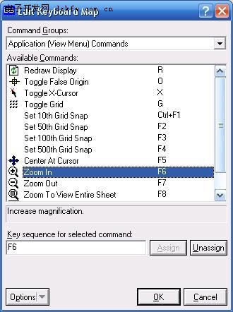 选择某个命令后,在下面输入自己习惯的键,点击Assign就可以修改了。如果改错了可以用Options按钮里的reset 恢复到默认状态。