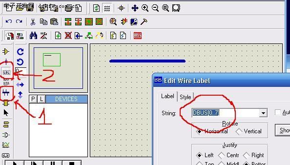 在弹出的Edit Wire Label对话框String中输入DBUS[0..7],表示该总线叫DBUS,包括DBUS0~DBUS7,注意方括号、启讫数字以及数字中间的两点。