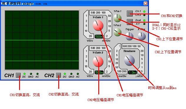 1。 两个绿点都没有: 上面的按钮切换CH1和CH2显示。