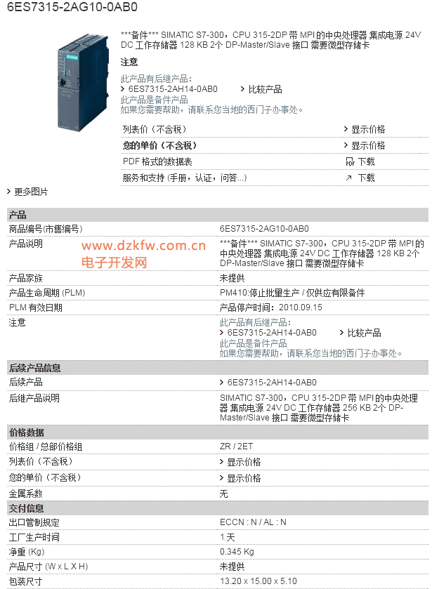 西门子PLC S7-300系列,CPU315主要有CPU315-2DP,CPU315-2PN/DP两种。它们的特点如下: