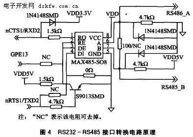 图4中RS485的数据流方向由GPE13口的电平进行控制。