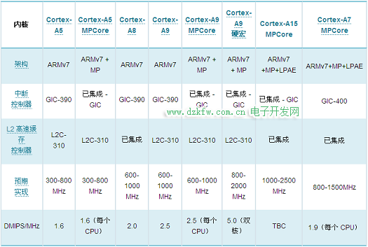 • ARM9™ 系列 - 基于 ARMv5 架构的常用处理器