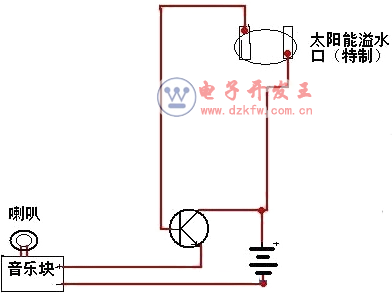 太阳能热水器水位控制报警电路 给太阳能热水器加水时,时常加冒了。我实验用一块音乐块和几个小零件做的加满报警器效果挺好,现推荐给大家。