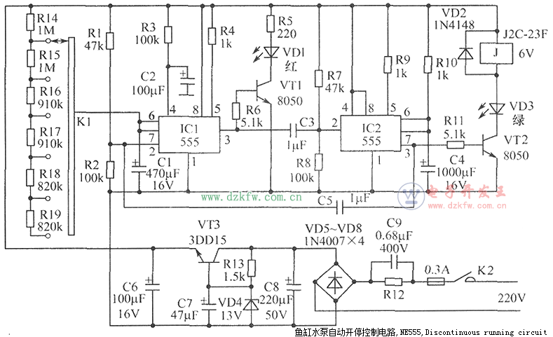 鱼缸水泵自动开停控制电路,Discontinuous running circuit