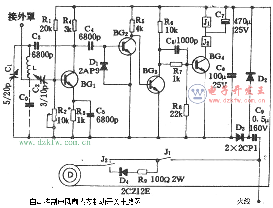 电风扇感应制动开关,通过风扇保护罩的感应如果有人触碰,就好自动停止风扇转动。