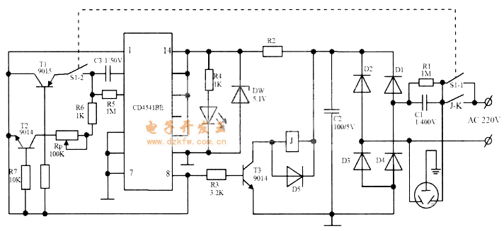 采用CD4541BE制作的延时断电开关电路,CD4541 Delay switch