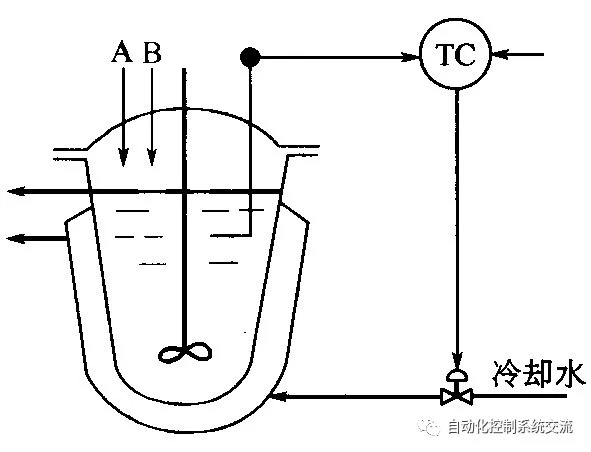 其中,被控对象:反应器;被控变量:反应器内的温度;操纵变量:冷却水流量。