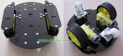 对于不太追求速度的场合应优先选用减速直流电机,如足球机器和灭火机器人等追求功能而对速度要求不高的场合,如图3,此车的传动比通常为几十到几百左右。一般对同一型号的减速电机,厂家都会提供多种传动比的产品提供给用户,应根据需要加以选择。