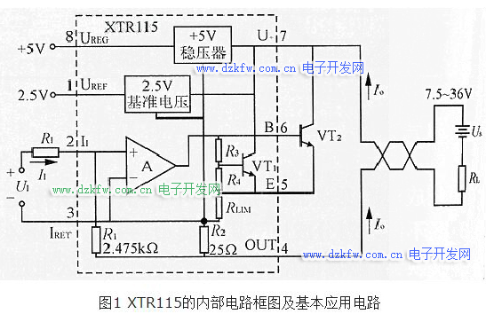 需要指出,XTR115只能配NPN功率管,不能配MOS场效应功率管。外部功率管应满足XTR115对电压、电流的要求,使用中还须给功率管装上合适的散热器。