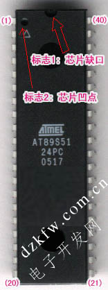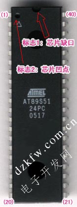 AT89S51有PDIP、PLCC、TQFP三种封装方式,其中最常见的就是采用40Pin封装的双列直接PDIP封装,外形结构下图。