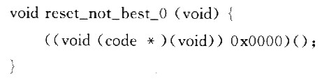 这段程序,用强制类型转换把地址0000H转换成re-set_not_best_O()函数的入口。实际上调用函数reset_not_best_O()等价于“LJMP 0000H”,没有处理可能的中断状态问题。