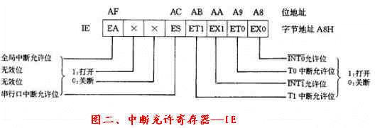 IE用来打开或关断各中断源的中断请求,基本格式如下图二所示: